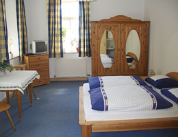 Im ersten Stock des Gasthofes warten zwei schöne 25qm große Dreibett-Zimmer auf Übernachtungsgäste. Bei den 26 Euro pro Person und Nacht (ab 2 Personen) ist das Frühstück schon dabei. Hunde mitbringen auf Anfrage.