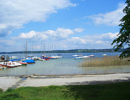 Die können Sie natürlich auch auf der großen Terrasse (100 Plätze) mit direktem Blick auf den Ammersee genießen. Dazu ein kühles Andechser Bier - was will man mehr.